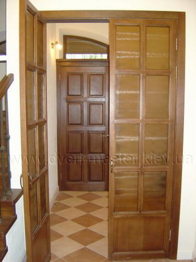 Деревянные двери из массива благородных пород становятся сегодня обязательным элементом интерьера элитного дома. Они , как правило, представлены в стиле, соединяющим в себе классический дизайн с естественной красотой натурального дерева. Иногда дизайн таких дверей удачно дополняется витражным стеклом.